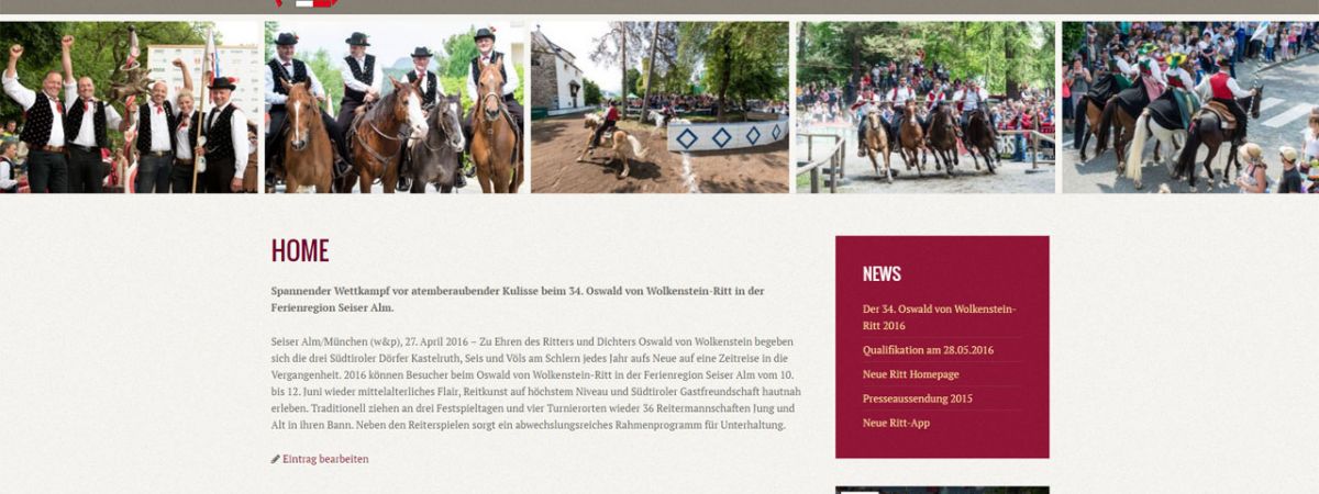 Die Homepage des Oswald von Wolkenstein-Rittes hat ein neues Design bekommen. Ebenso finden Sie einige neue Funktionen. Rechts neben den Inhalten finden Sie die „News“-Box, welche die letzten Beiträge auflistet und die „Facebook“-Box. Die vollständige Auflistung der Beiträge finden Sie im Menü unter „News“ oder „Presse“. Ebenso wurde die Auflistung der Ergebnisse überarbeitet und Sie können diese ordnen und durchsuchen. Durch wählen eines...